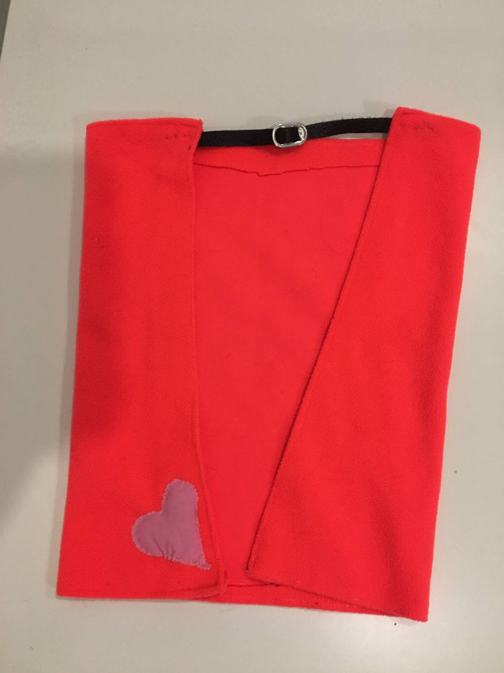Oranssi fleeceloimi jossa sydän. Hinta: 6e